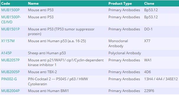 西美杰代理的Nordic-MUbio品牌提供了大量與p53蛋白相關(guān)的抗體產(chǎn)品,這些產(chǎn)品在癌癥領(lǐng)域的研究中發(fā)揮著重要作用。這些抗體的研究方向涵蓋了細胞周期、癌癥、細胞結(jié)構(gòu)、腫瘤學(xué)、細胞凋亡、感染性疾病、CD maker、細胞粘連、酶、細胞外基質(zhì)和干細胞等多個領(lǐng)域。為了方便客戶進行搜索,小編整理了部分與p53蛋白相關(guān)的抗體產(chǎn)品列表: