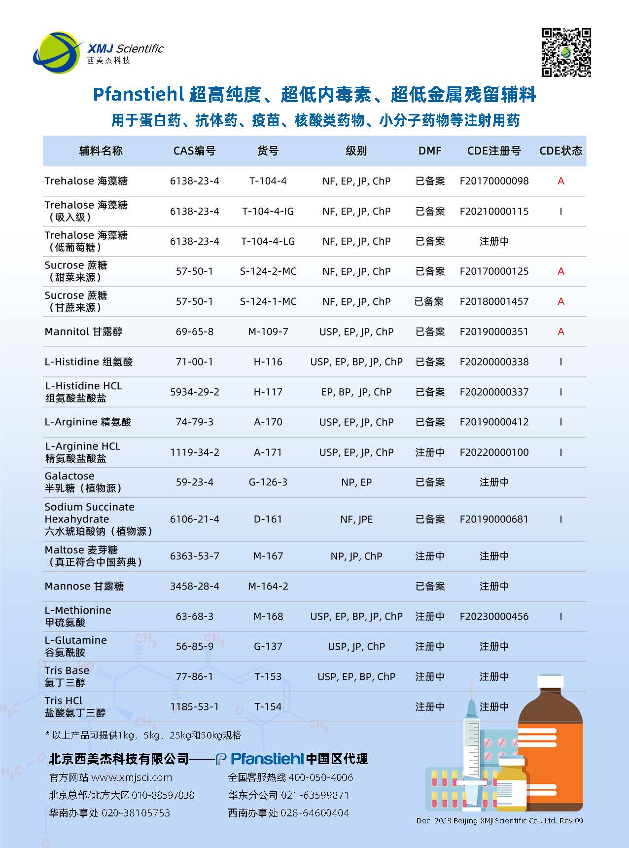 Pfanstiehl Inc.成立于1919年, 公司總部位于美國(guó)芝加哥市北郊沃吉根工業(yè)區(qū),是美國(guó)老字號(hào)企業(yè)之一,也是一家真正的cGMP生產(chǎn)商。作為一家有著百年基業(yè)和沉淀的公司,Pfanstiehl Inc立志將產(chǎn)品質(zhì)量做到極致,是全球生物制藥領(lǐng)域超純糖類(lèi)、氨基酸類(lèi)以及其他尖端分子的領(lǐng)先生產(chǎn)商,迄今已服務(wù)全球蛋白藥、抗體藥、疫苗、mRNA及核酸類(lèi)藥物等領(lǐng)域100年以上。Pfanstiehl Inc. 超高純度、超低內(nèi)毒素,超低金屬離子含量的輔料制劑產(chǎn)品,全面的技術(shù)和法規(guī)審計(jì)支持,真正的cGMP質(zhì)量控制體系,接受FDA的定期監(jiān)察審計(jì)等都被國(guó)際知名生物制藥公司所認(rèn)可。Pfanstiehl Inc.是全球超高純度、超低內(nèi)毒素、超低金屬離子含量等注射級(jí)糖類(lèi)的領(lǐng)先制造商,產(chǎn)品生產(chǎn)均參照ICHQ7質(zhì)量體系。自2015年進(jìn)入中國(guó)市場(chǎng)以來(lái),Pfanstiehl Inc.已獲得13個(gè) CDE登記號(hào),主要產(chǎn)品含括海藻糖,蔗糖,D-甘露醇,組氨酸,組氨酸鹽酸,精氨酸,精氨酸鹽酸,琥珀酸鈉,甲硫氨酸等,其中海藻糖F20170000098,甘蔗源蔗糖F20180001457和甜菜源蔗糖F20170000125, D-甘露醇F20190000351的CDE號(hào)均已激活。 Pfanstiehl Inc.于2023年又重磅推出注射級(jí)Tris和Tris HCl,這將是全球高質(zhì)量的Tris和Tris HCl。作為一家有著百年歷史的企業(yè),Pfanstiehl Inc. 也在持續(xù)投資,不斷擴(kuò)充產(chǎn)品管線和擴(kuò)大生產(chǎn)產(chǎn)能,以滿足和支持全球生物制藥行業(yè)的快速發(fā)展,特別是更好的助力中國(guó)生物制藥的發(fā)展需求。
