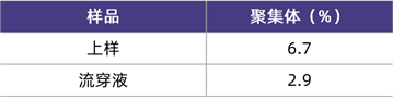 在該應用案例中,研究人員使用CHO細胞表達IgG型單克隆抗體,料液經過Protein A親和層析和陽離子交換層析純化后,在較低的pH和較高的電導率條件下孵育,誘導產生高含量的聚集體,再以流穿模式上樣HCPureTM,收集流穿液和淋洗液,檢測聚集體含量。